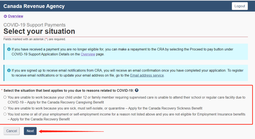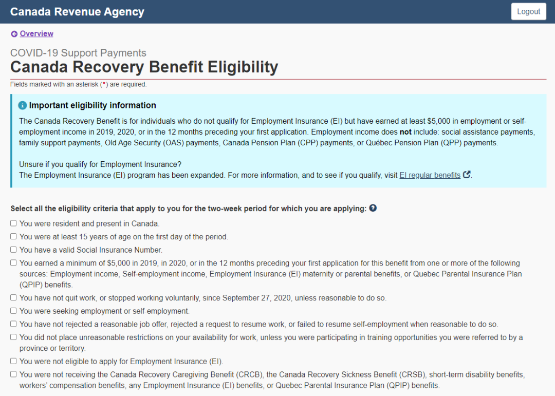 (9)你没有获得加拿大康复护理福利(CRCB)、